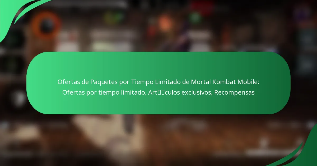Las Ofertas de Paquetes de Tiempo Limitado de Mortal Kombat Mobile presentan a los jugadores artículos exclusivos dentro del juego disponibles por un corto periodo. Estas promociones especiales mejora...